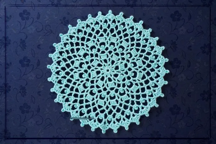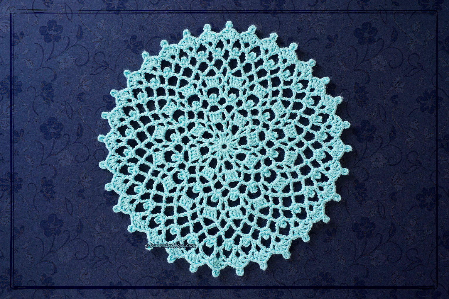 Tweak the yarn weight and hook size until you’ve got the size that’s just right for you. This adorable doily measures about 19 cm or 7.5 inches across when crafted with crochet thread size 10 and a 1.75 mm hook.