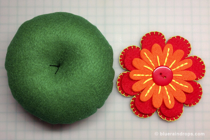 - Cut out the felt circle and the flower petals. For the flower you can use this template or make your own.