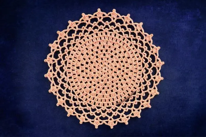 If you want to add a splash of color and create an adorable two-color doily, it’s incredibly easy! After completing Round 9, fasten off the yarn and begin Round 10 by introducing your new color. Join the new hue with a slip stitch in any chain-1 space from Round 9. This change opens up a world of vibrant possibilities, allowing you to craft something truly charming and uniquely yours!