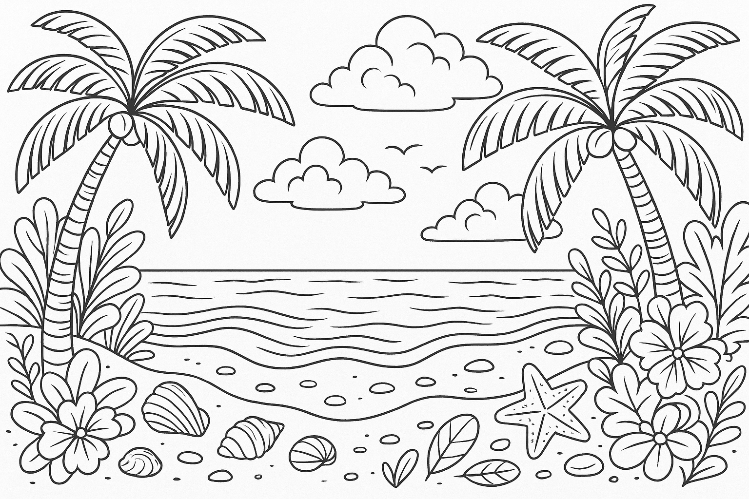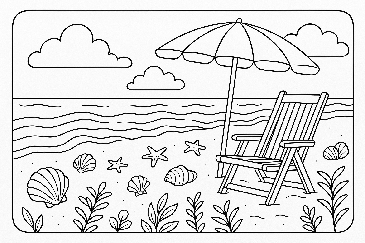 Dive into calm coastal scenes with relaxing beach and ocean-themed coloring pages. From seashells and starfish to gentle waves and sea creatures, each page brings a splash of serenity and summer warmth to your coloring moments.